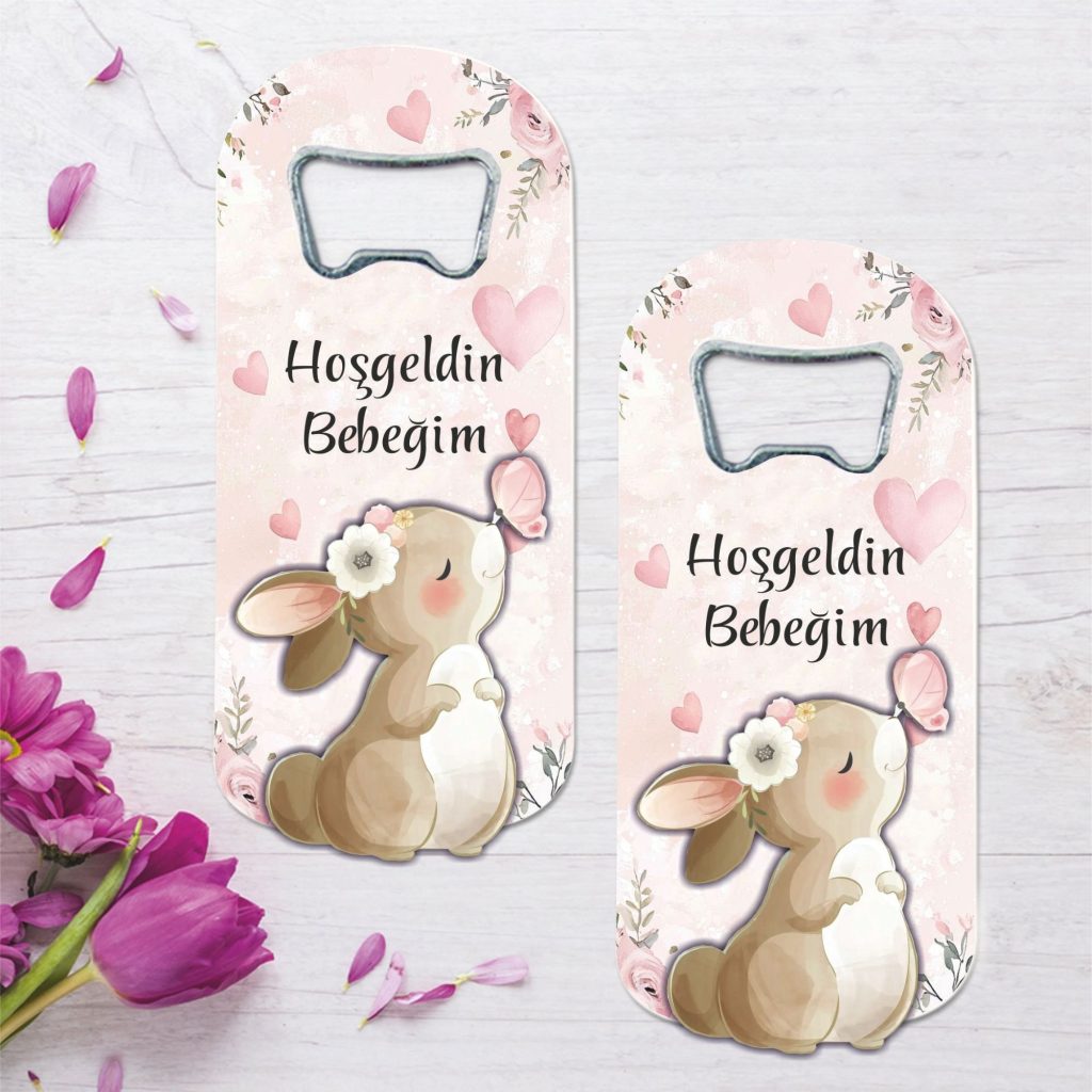 Tavşan Temalı Ahşap Kabartmalı Açacak Magnet