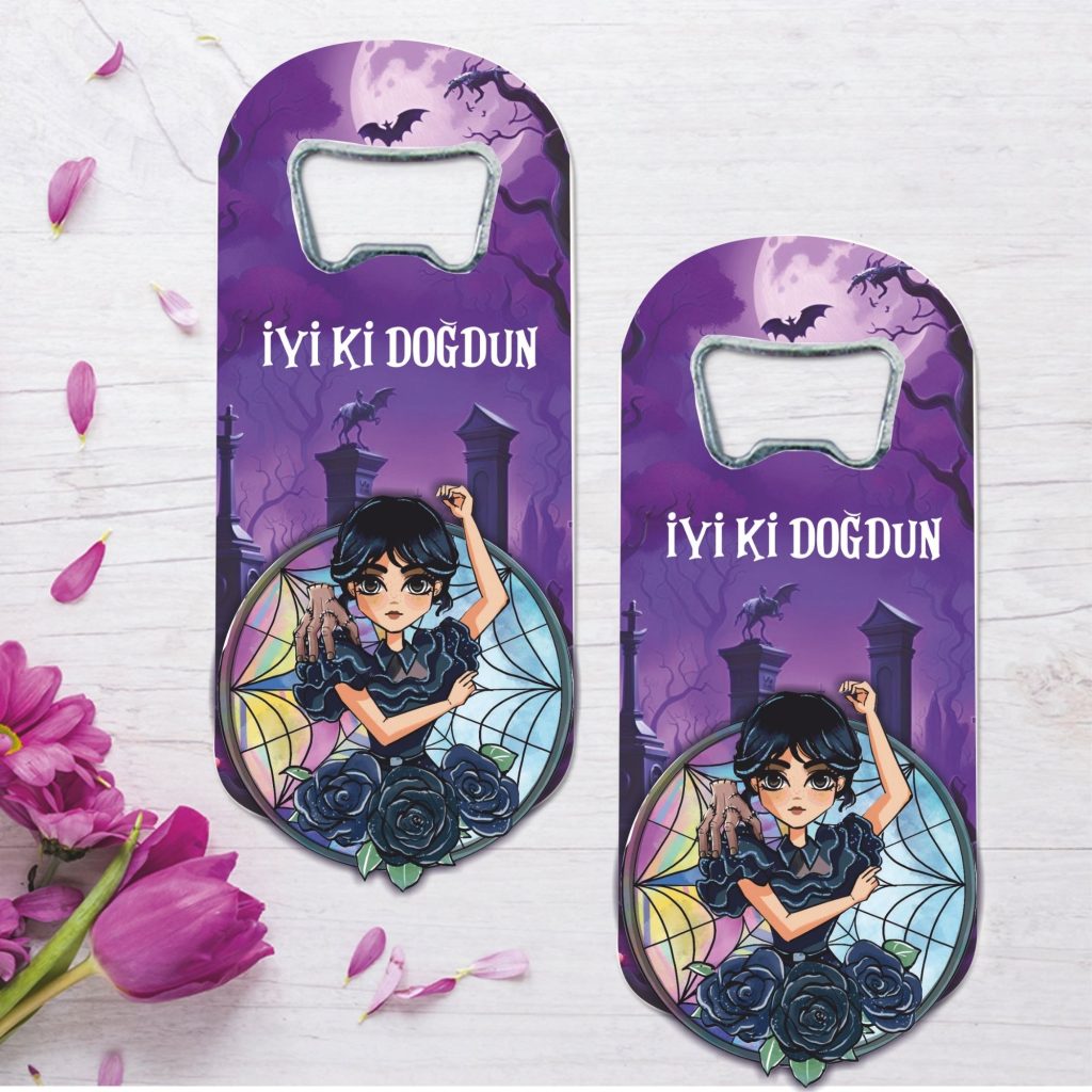Wednesday Temalı Ahşap Kabartmalı Açacak Magnet