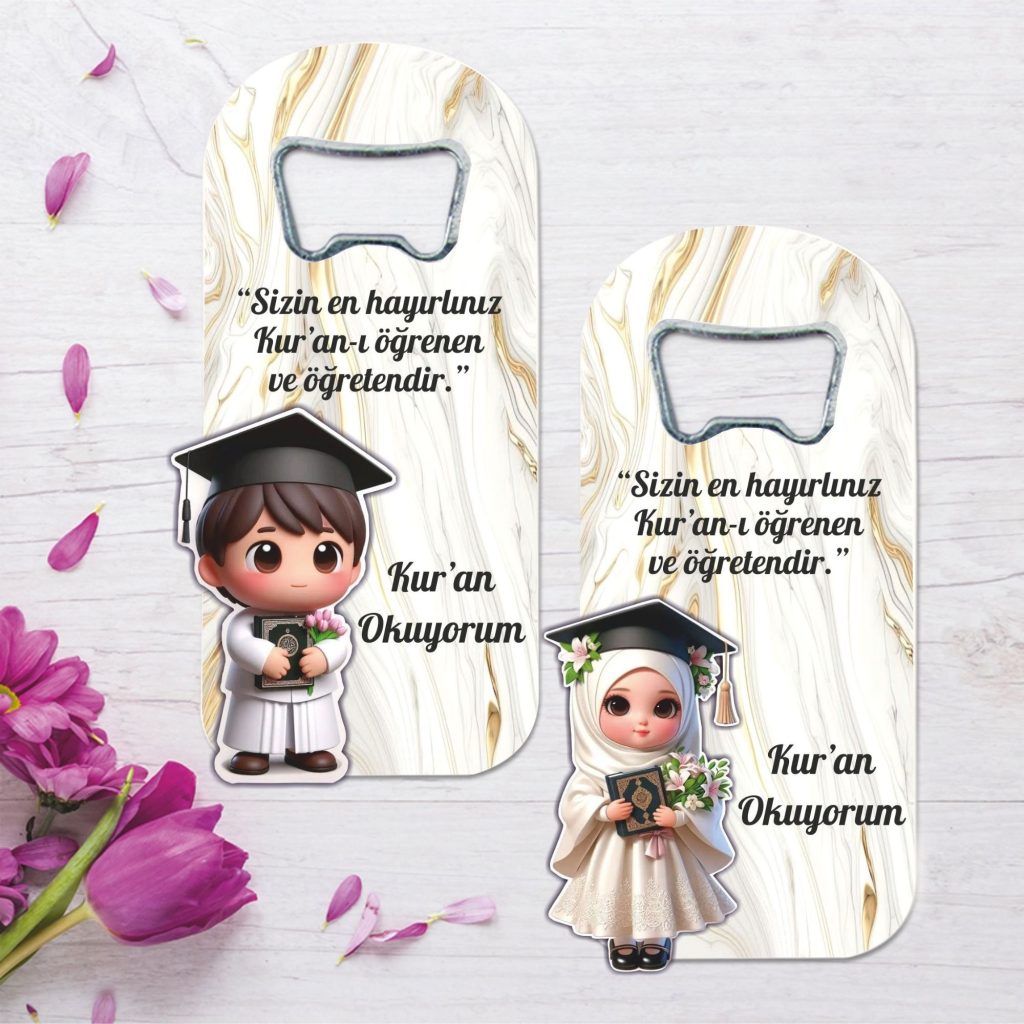 Kur-an , Hatim Hatırası Ahşap Kabartmalı Açacak Magnet