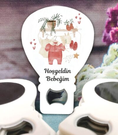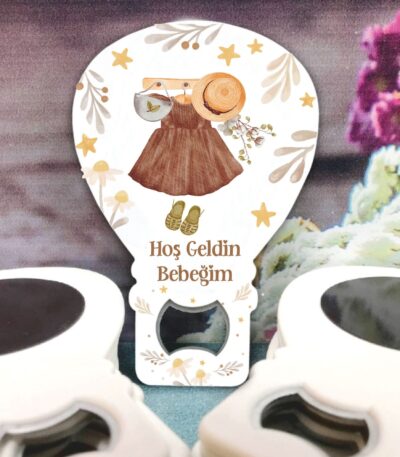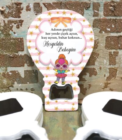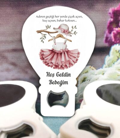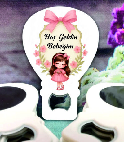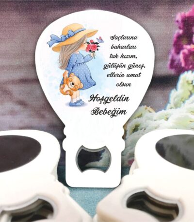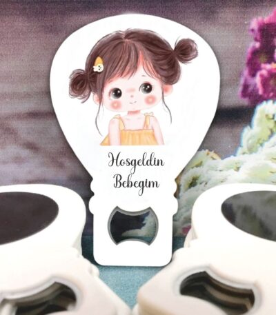 Kız Bebek Temalı Ahşap Kabartmalı Açacak Magnet