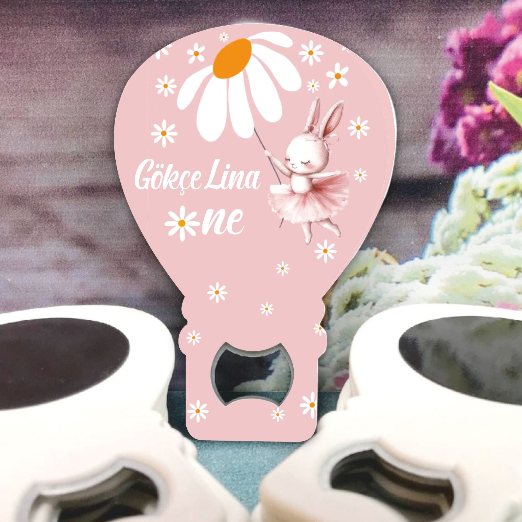 Papatyalı Tavşan Konsept Balon Açacak Magnet