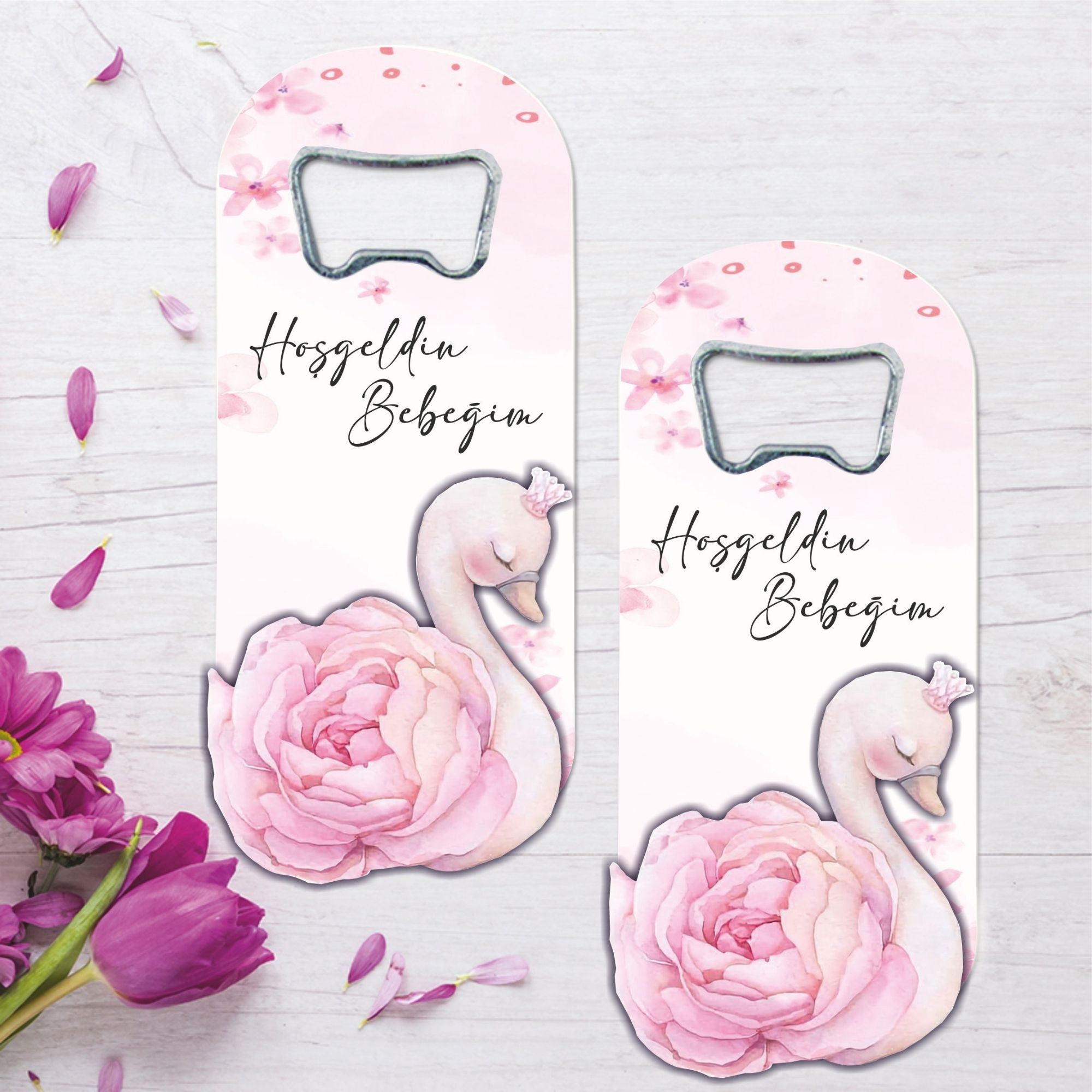 Kuğu Temalı Ahşap Kabartmalı Açacak Magnet