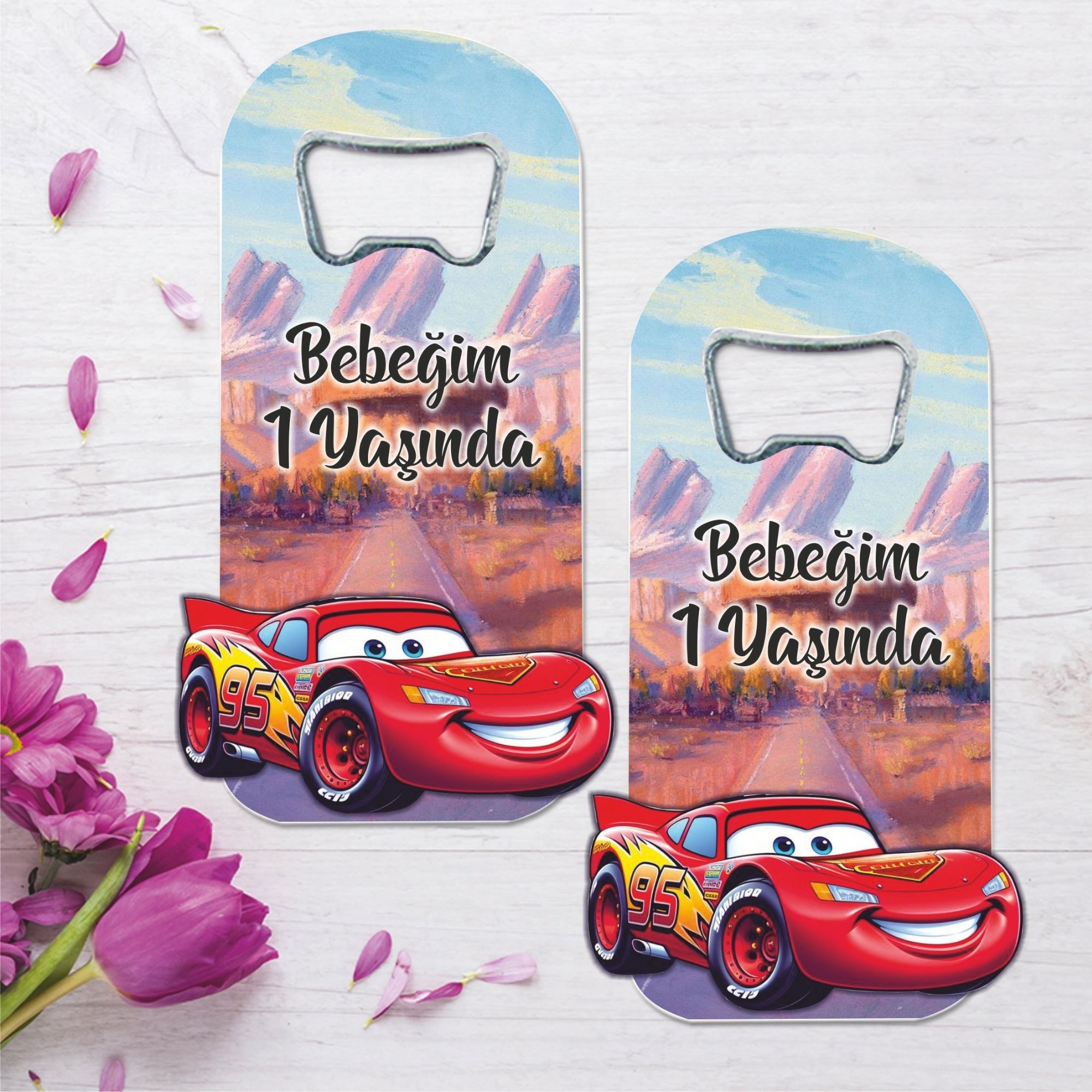 Şimşek mcqueen Temalı Ahşap Kabartmalı Açacak Magnet