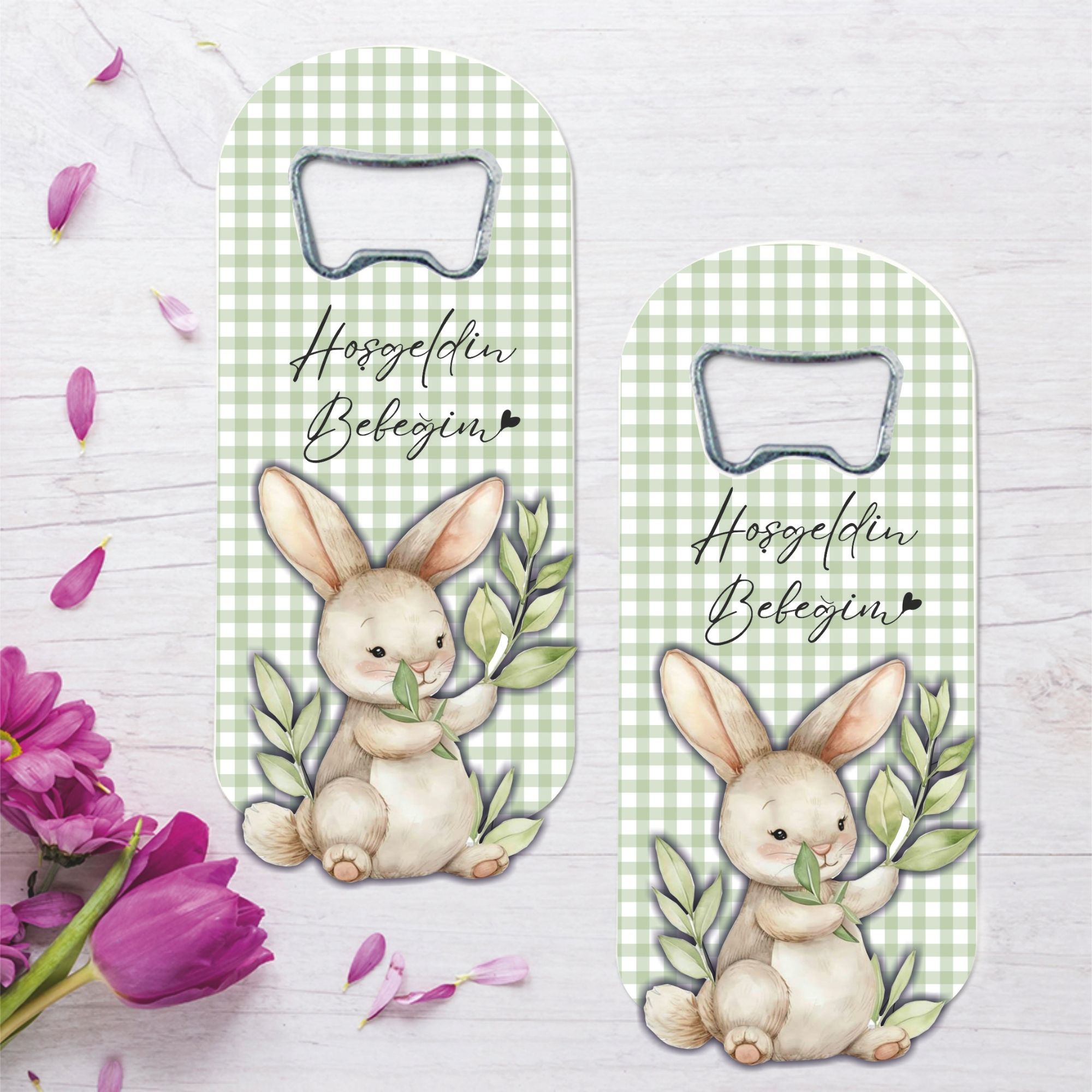 Tavşan Temalı Ahşap Kabartmalı Açacak Magnet