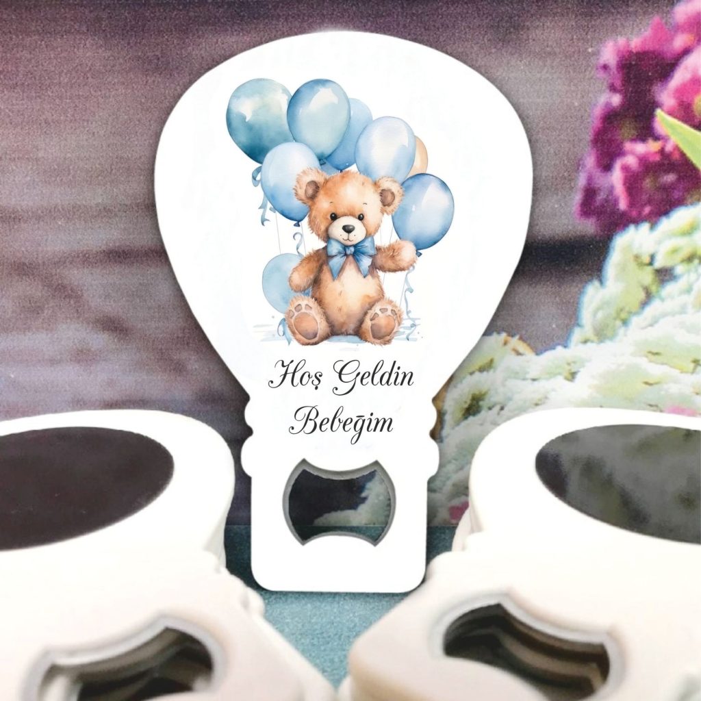 Mavi Balonlu Ayıcık Desenli Bebek Balon Açacak
