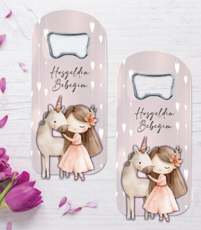 Kız Bebek Desenli Ahşap Kabartmalı Pleksi Magnet