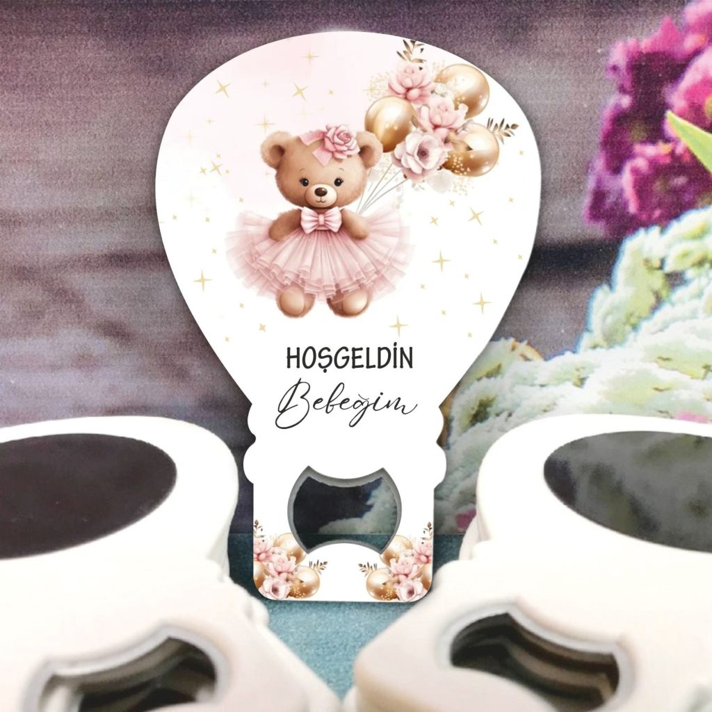 Pembe Elbiseli Ayıcık Desenli Bebek Balon Açacak
