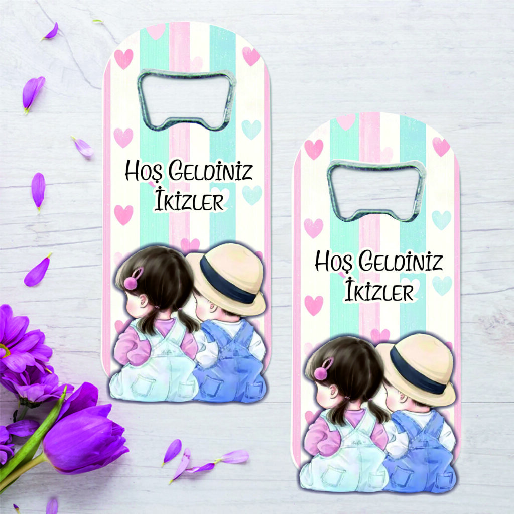 İkiz Bebek Temalı Ahşap Kabartmalı Açacak Magnet