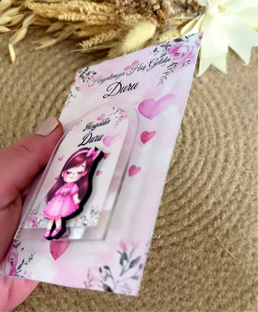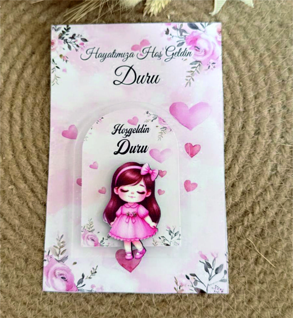 Kız Bebek Desenli Ahşap Kabartmalı Pleksi Magnet